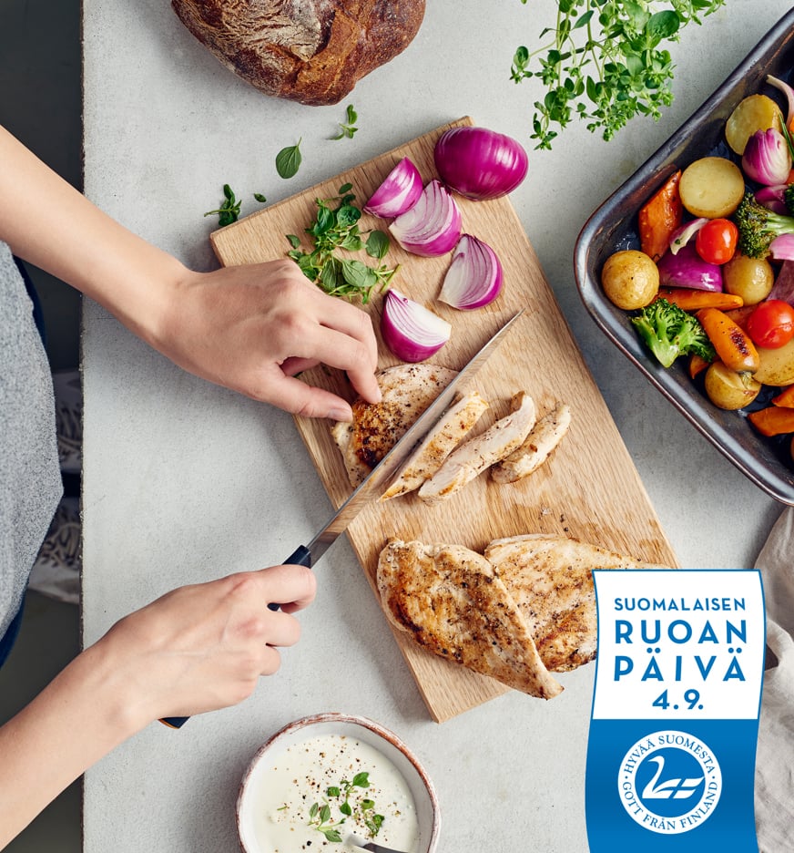 Jokaista vuotta tahdittavat monet herkulliset juhlasesongit, joissa ruoka on keskeisessä roolissa. Sesonkijuhlien kuten vapun ja juhannuksen lisäksi vinkeistämme voit löytää inspiraatiota myös arjen juhlahetkiin. Kaipasit sitten vinkkejä valmistujaisjuhlien tarjoiluihin, joulukinkun paistoon tai inspiraatiota pääsiäispöydän koristeluun, meiltä löydät monipuoliset reseptit ja vinkit jokaisen juhlapöydän kruunaamiseksi. Juhlatarjoilut voi valmistaa myös helposti ja nopeasti mausta tinkimättä. Kurkkaa alta vinkkimme, joilla saat loihdittua tarjoilut mihin tahansa tärkeään juhlahetkeen.