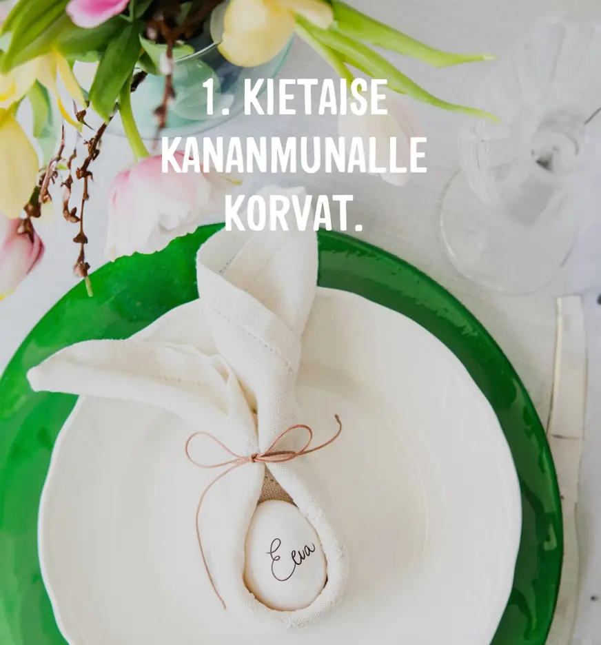 Pääsiäisen kattaus kaipaa värejä. Värien ja keväisen tunnelman luominen onnistuu helposti ilman suuria kustannuksia tai ostoksia, sillä monet koristeet voit tehdä itse kotona. Tästä esimerkkinä ovat pääsiäiseen sopivat kananmunat. Kokeile tänä vuonna yhdistää kananmunia kattaukseesi ja suosi esimerkiksi pöytäliinassa ja serveteissä keväisen raikkaita värejä, kuten keltaista. Nappaa vaikka myös pajunoksia mukaan!